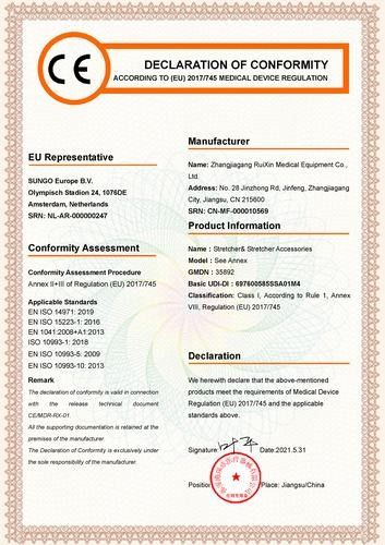 | 品質基準 | 医療用ストレッチャは,ISO 9001とISO 13485などのすべての関連業界基準を満たし,品質管理システムと医療機器規制の遵守を確保する必要があります. |